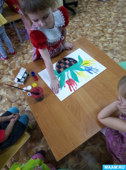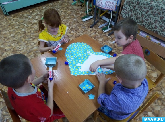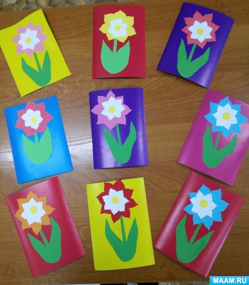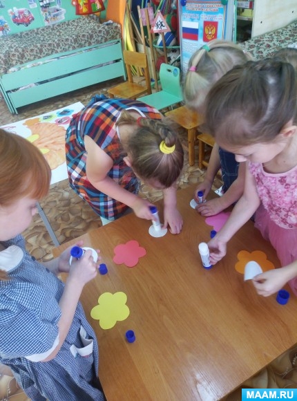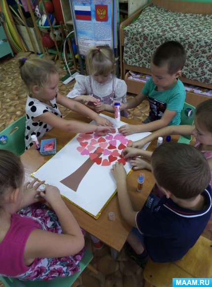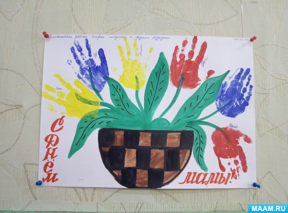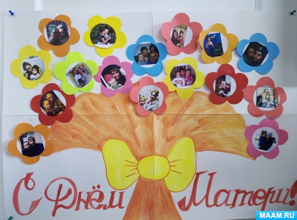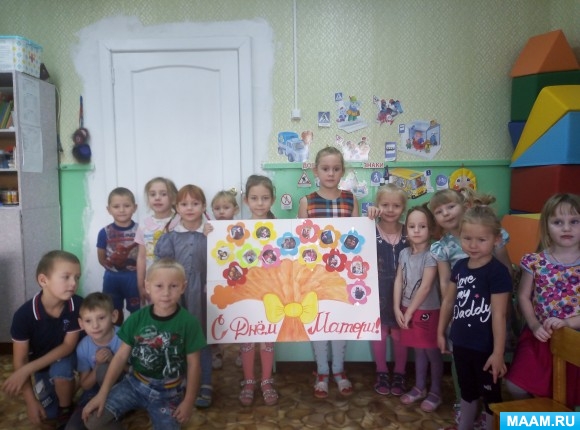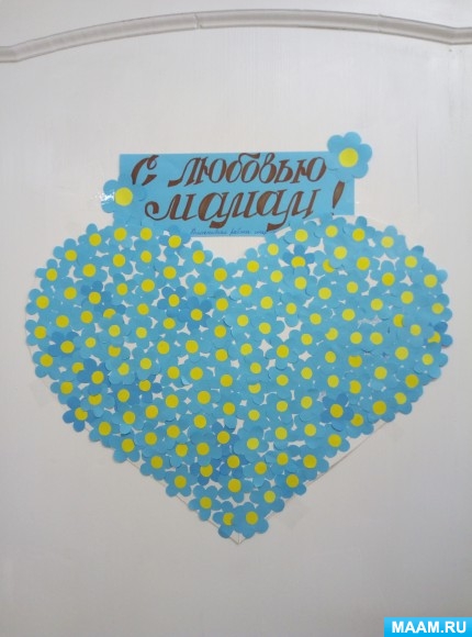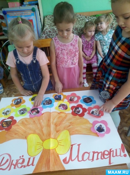 Работа с детьми: 1. Беседы: «Нет лучше дружка, чем родная матушка»; «Как я помогаю маме дома»; «Профессия моей мамы», «Мамы разные нужны, мамы всякие важны»; «Ласковое слово о маме»; «Чем моя мама любит заниматься». 2. Чтение художественной литературы:Л.Воронкова «Что сказала бы мама?»; Е.Пермяк «Как Миша хотел маму перехитрить», «Мамино горе»; рассказы Б.Емельянова «Мамины руки»; ненецкая сказка «Кукушка»; Н.Саконская «Разговор о маме»;В. Руссу «Моя мама»; О. Высоцкая «Дорогая наша мама»; Е.А. Раннева «Берегите маму». Стихотворения: М.Пляцковский «Мамина песенка»; А. Барто «Разговор с мамой», «Разлука», «Мама ходит на работу»; Е.Благинина «Мамин день». 3. Творческая мастерская: Старшая и подготовительная подгруппы: Аппликация: «Сердечко для мамы» Коллективная работа «Дерево счастья и любви» Рисование «Портрет любимой мамочки» Средняя и вторая младшая подгруппы: Аппликация: «Цветочек для мамы» Коллективная работа «Сердечко из цветочков» Рисование: «Корзинка с цветами» (нетрадиционным способом) 4. Праздничный концерт «Мама – счастье моё!» Работа с родителями: 1. Консультации «День Матери: история и традиции»; «Семейные ценности». 2. Фотовыставка «Я и моя мама» 3. Конкурс поделок «Мама – мастерица» Аппликация "Цветочек для мамы"