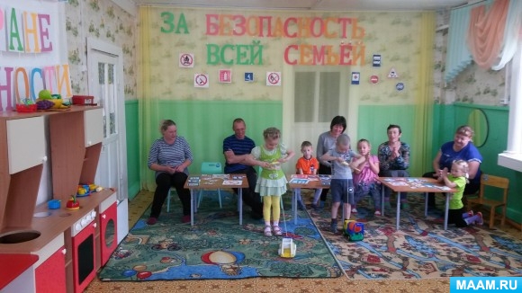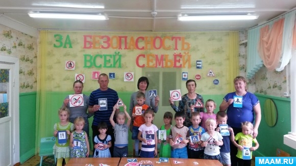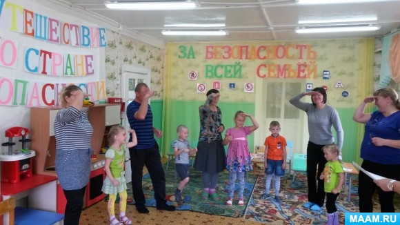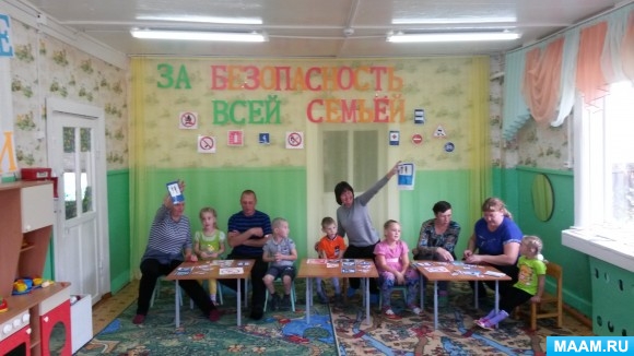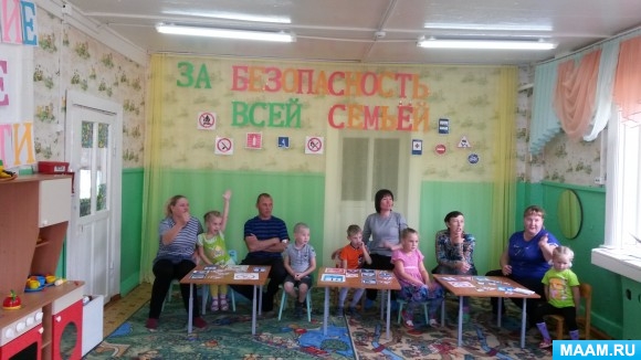 Викторина «За безопасность всей семьёй» 2019u/Викторина «За безопасность всей семьёй» Воспитатель Непомнящих Н.Н Цель:закрепить знания детей о правилах пожарной безопасности, Правила дорожного движения. Задачи:воспитание в детях чувства осторожности, формирование умений решать задачи на смекалку, закрепление знаний, активизация познавательной деятельности. Вед: Здравствуйте, уважаемые гости! Вы все знаете, что наши дети очень любят играть, а больше всего на свете они любят играть вместе со своими родителями. И сегодня мы им предоставим эту возможность. Викторина посвящена основам безопасности жизнедеятельности по правилам дорожного движения и пожарной безопасности. Встречайте семейные команды игроков! Ведущий: предлагаю командам небольшую разминку. За каждый правильный ответ команда получает фишку. Разминка для детей и родителей: А теперь я вас проверю, И игру для вас затею. Я задам сейчас вопросы – Отвечать на ни непросто. Чередуем вопросы: 1. Какой из этих знаков обозначает место, где можно переходить дорогу? 2. Как называется профессия людей, борющихся с огнём? (пожарный). 3. Какой знак запрещает движение пешеходов? 4. Почему пожарная машина красного цвета? (чтобы издалека было видно, что едет пожарная машина и ей надо уступить дорогу). 5. Как называется этот знак? 6. Почему опасно играть в доме со спичками и зажигалками? (Игры со спичками и зажигалками являются причиной пожара). 7. Какой знак говорит, что скоро можно будет вкусно поесть? 8. По какому номеру телефона вызывается пожарная служба? (01, 112). 9. Что надевают пожарные, когда их вызывают на пожар? (брезентовый костюм - не горит, не промокает; каска - защищает голову от удара, рукавицы – защищают руки от ожогов; сапоги – защищают ноги от ожогов, аппарат для дыхания – защищает гортань от дыма). 10.Чем можно тушить начинающийся пожар? (Пожар можно тушить огнетушителем, водой, песком, одеялом). 11.Что нужно сообщить, вызывая пожарных? (Необходимо сообщить свой точный адрес, фамилию, имя и что горит). 12. Что надо делать, если в квартире много дыма? (Необходимо смочить водой одежду, покрыть голову мокрой салфеткой, дышать через намоченную ткань, продвигаться к выходу ползком). Задание №1 для детей «Весёлое автомульти» Дети должны назвать виды «транспорта» на которых путешествовали сказочные герои. 1.На чём ехал Емеля к царю во дворец? (печка) 2. Любимый вид транспорта кота Леопольда? (велосипед) 3. Чем смазывал моторчик Карлсон? (вареньем) 4. Какой подарок сделали родители дяди Фёдора почтальону Печкину? ( велосипед) 5. Во что превратила добрая фея тыкву для Золушки? (карету) 6. На чём летал Алладин? (ковёр – самолёт) 7. На чём катался Кай из сказки «Снежная королева»? (санки) 8. Личный транспорт Бабы Яги? (ступа) Ведущий: а сейчас мы немного отдохнём и поиграем. Игра «Будь внимательным» - Я называю слова, а вы хлопаете, если услышите название предмета, относящегося к пожару: Дым, дом, пирожное, утюг, морковь, вода, шланг, краска, каска, билет, электроприбор, лопата, сирена, спичка, карандаш, маска, огонь, кукла, огнетушитель, ложка, крошка, печка, свечка, кровать, искра. Задание №2 «Отгадай загадки» 1.Шипит и злится, Воды боится, С языком, а не лает, Без зубов, а кусает (огонь). 2.С огнем бороться мы должны, Мы смелые работники, С водою мы напарники, Мы очень людям всем нужны, Так кто же мы? (пожарные) 3.Я мохнатый, я кудлатый, 